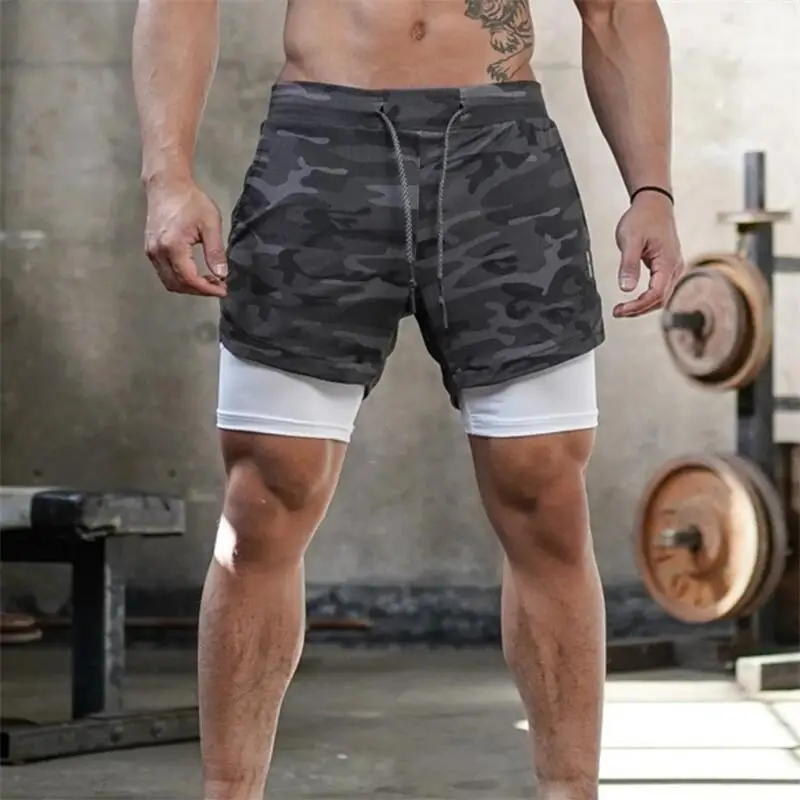 Men's 2 in 1 Running Shorts Gym Fitness Shorts with Pockets Summer Sportswear Quick Dry Stretch M-XXXL