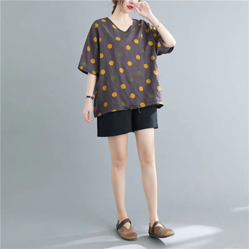 Embrace the essence of vintage style with our trendy loose-fit cotton t-shirt that is perfect for the summer season. Designed with a chic V-neck and short sleeves, this blouse effortlessly combines simplicity and elegance for a casual yet stylish look. Made from a premium blend of linen, this t-shirt offers breathability and comfort, making it an ideal choice for warm weather. The unique printing details add a touch of flair, ensuring you stand out while staying true to your style. Available in two stunning colors: Dark Gray and Coral Red, and in a variety of sizes (L, XL, XXL, XXXL), you can easily find the perfect fit that complements your wardrobe. Why You'll Love It: